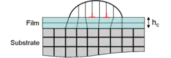 Deze spanningen kunnen trek- of drukkrachten zijn en breuk of knikken veroorzaken, naast andere vormen van spanningsrelaxatie. In epitaxiale films kunnen aanvankelijk afgezette atoomlagen coherente kristalroostervlakken met het substraat hebben. Na een kritieke filmdikte zullen zich echter dislocaties vormen die leiden tot een verandering van spanningen in de film.[6]