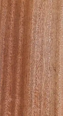 Het is kruisdradig, met roodbruin kernhout en rozegrijs spinthout. Het wordt gebruikt voor buiten- en binnenschrijnwerk waaronder meubels, trappen, fineer en beeldhouwhout.