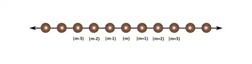 In deze paragraaf wordt bij wijze van voorbeeld een uitwerking van het model gegeven, toegepast op een eendimensionaal kristalrooster, zoals te zien is in Figuur 1. Wellicht tegen de intuïtie in is het eendimensionale geval zeker niet onbruikbaar of irrelevant: voor onderzoek naar elektronische materiaaleigenschappen wordt experimenteel regelmatig een eendimensionale keten gebruikt.[4]