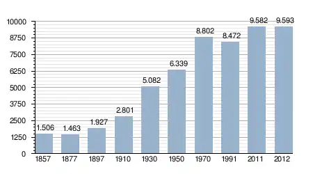 - Bron: INE; 1857-2011: volkstellingen