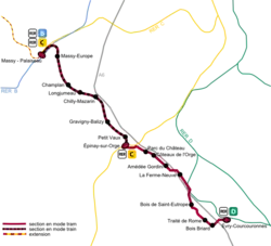 De tramlijn verbindt de stations van Évry-Courcouronnes en Massy - Palaiseau. De lijn kruist met RER-lijn B in Massy - Palaiseau, RER-lijn C in Massy - Palaiseau en Épinay-sur-Orge, RER-lijn D in Évry-Courcouronnes en Transilien-lijn V in Massy - Palaiseau, en ontsluit bedrijfsgebieden, zoals het bedrijvenpark Massy-Europe, en verschillende dichtbevolkte woongebieden.