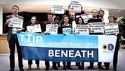 In verschillende Europese landen werden betogingen georganiseerd tegen het TTIP-vrijhandelsakkoord. Op 20 september 2016 werd in Brussel een 'Stop TTIP & CETA Day' gehouden[43] waaraan 10 000 à 15 000 deelnamen. Ook in grootsteden zoals Parijs, Berlijn en Barcelona voerde men reeds actie.[44]