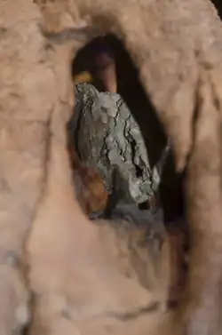 Op 29 augustus 2013 werd echter na een tweede melding een uitzonderlijk compleet skelet aangetroffen op de honderd vierkante kilometer grote ranch van veehouder Lige M. Murray in Montana, zo'n vijftig kilometer ten zuiden van Jordan gelegen. De eerste vondst, van een onderkaak, tanden, een staartwervel en een bekken, was in de avond van 27 mei 2013 gedaan door Michele Daniëls, een amateurpaleontologe van Nederlandse afkomst die in 1968 naar de Verenigde Staten van Amerika was geëmigreerd, tijdens een wandeling op de East Pasture met haar man Blaine Lundstad; beiden werkten op de ranch. Dat het fossiel een tyrannosaurus betrof, werd bevestigd door fossielenjager Clayton Phipps bijgenaamd Dino Cowboy. Dat jaar nog werd door een Nederlands team tot 9 september een belangrijk deel van het skelet geborgen, met assistentie van Lundstad, Phipps en Larson, en naar het Black Hills Institute overgebracht ter preparering, een proces dat duizenden manuren zou kosten.[2] Voor Larson was het het tiende tyrannosaurusskelet dat hij opgroef.[1] Gedurende 2014 en het voorjaar van 2015 volgde het restant, voornamelijk kleine fragmenten. De fossielen bevonden zich op een oppervlakte van twintig bij tien meter.[4] Op 5 september 2013 voerde paleontoloog Philip Manning van de University of Manchester een lidar-laserscan van het oppervlak uit om de precieze locatie van de botten vast te leggen.[5] Het skelet is gevonden in een laag zandsteen van de Hell Creek-formatie, welke laag volgens paleomagnetisch onderzoek naar de ompoling minstens 66,4 miljoen jaar oud is. De verschillende skeletelementen lagen gedeeltelijk in anatomisch verband, vooral bij de borstkas en de staartpunt. De zandsteen was vrij los en maakte een snelle berging mogelijk. De conditie van de beenderen is tamelijk goed, wat door sedimentair geoloog Pim Kaskes is verklaard als een gevolg van het hoge kalkgehalte van het zand, ongeveer 25%, wat schadelijke zuren zou hebben geneutraliseerd, en het feit dat zand niet eenvoudig gecomprimeerd wordt.[6] Het skelet werd vermoedelijk kort na de dood van het dier weggespoeld door een overstroming, een oude rivierbedding in, en bedekt met 3,2 meter dik sediment. Boven en onder deze laag bevinden zich normale rivierkleiafzettingen met een hoger gehalte aan organisch materiaal zoals van de watervaren Azolla cretacea die duidt op de aanwezigheid van ondiepe meertjes.[2] Het wegspoelen wordt bewezen door het feit dat de schedel acht meter van de schoudergordel vandaan is aangetroffen.[1] Bij de opgraving werd een losse tand van een kleinere tyrannosaurine aangetroffen, wellicht van een jonge tyrannosaurus of van Nanotyrannus, een kleiner geslacht dat volgens sommige onderzoekers naast Tyrannosaurus bestond.[7]
