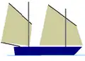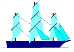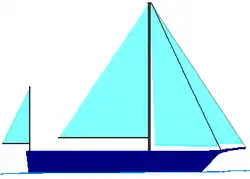 De normale schoener is langsgetuigd, de topzeil en topzeil gaffelschoener voeren een vierkant razeil aan de steng (verlengstuk van de mast).