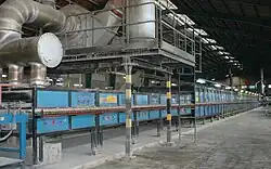 De tunneloven bestaat uit een 100 tot 240 m lange geïsoleerde tunnel waar de vormelingen op keramische rollers van vuurvast materiaal overheen gaan of op karretjes over rails doorheen worden getrokken. Vanwege de hitte in de oven moeten deze karretjes aan de bovenkant beschermd worden met vuurvast materiaal, zoals vuurvaste stenen. De tunnel wordt vanaf één zijde en de bovenkant verhit. Als brandstof werd in eerste instantie steenkool of stookolie gebruikt, maar sinds de jaren vijftig voornamelijk aardgas.[2] De baktemperatuur ligt tussen de 900°C tot 1250°C, deze is afhankelijk van het te bakken product en de gebruikte kleisoort. De tunnel is onderverdeeld in drie delen: de opwarmzone, de stookzone en de afkoelzone. Nadat de vormsels in circa 18 uur bij een temperatuur van 90°C gedroogd zijn, gaan deze de tunnel in. In de opwarmfase wordt de opwarmsnelheid rond de 500°C vertraagd omdat bij 573°C de zogenaamde kwartssprong plaatsvindt, waarbij het volume verandert en bij te snel verwarmen scheuring optreedt. In het middengedeelte van de tunnel is de temperatuur het hoogst en begint het eigenlijke bakken. Bij deze sintering ontstaan de keramische verbindingen die het gebakken product zijn eigenschappen geeft. De afkoeling gaat daarna snel tot circa 600°C wanneer het afkoelingsproces moet worden vertraagd in verband met de kwartssprong. Als de temperatuur tot 100°C is gedaald, kunnen de gebakken producten de tunnel verlaten.[3] Een complete cyclus duurt gemiddeld 16 à 18 uur voor dakpannen en 3 dagen voor bakstenen.[4] Het stook- en transportproces in de tunnel werd vanaf begin jaren zestig[1] volledig geautomatiseerd. Sindsdien kan doorlopend worden geproduceerd.[5]