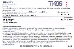 - ↑ Proces-verbaal van de zitting van het centraal stembureau tot het vaststellen van de uitslag van de verkiezing van de leden van de Tweede Kamer (pdf) p.4,5. Kiesraad (1 december 2006). Geraadpleegd op 28 juli 2013.