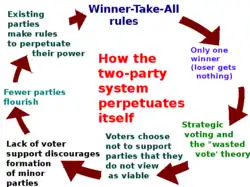 Van de Verenigde Staten wordt algemeen aangenomen dat het een tweepartijensysteem heeft. De Democraten en de Republikeinen zijn electoraal gezien dominant, third party-kandidaten behalen slechts zelden een overwinning. Doorheen de geschiedenis van de Verenigde Staten is er nog nooit een president verkozen vanuit een third party. Ook werd er nog geen meerderheid behaald door een third party in de Senaat of het Huis van Afgevaardigden.