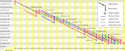 Verreweg de meest voorkomende isotoop van uranium is uranium-238 met een abundantie (relatieve aanwezigheid) van 99,2743%.[4] Deze isotoop vervalt via een lange vervalreeks van 14 of 15 stappen naar lood-206 (de radiumreeks). De tussenstappen hebben elk een kortere halfwaardetijd (en een hogere vervalconstante), zodat de tussenproducten nauwelijks in een mineraal aanwezig blijven: