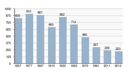 - Bron: INE, 1857-2011: volkstellingen