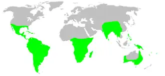 Deze familie komt voor in tropische delen van Amerika, Afrika, Azië en Australië
