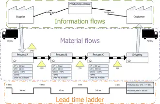 • Dit artikel of een eerdere versie ervan is een (gedeeltelijke) vertaling van het artikel Value Stream Mapping op de Engelstalige Wikipedia, dat onder de licentie Creative Commons Naamsvermelding/Gelijk delen valt. Zie de bewerkingsgeschiedenis aldaar.