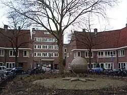 - ↑ NAi noemt Hildo Krop als mogelijke beeldhouwer, op grond van Monumenten in Nederland. Noord-Holland. Het werk wordt niet vermeld in Krops oeuvre-catalogus bij Koopmans (1997) en Lagerweij-Polak (2012). Gezien de context in Monumenten in Nederland wordt met het daar vermelde beeldhouwwerk mogelijk gedoeld op de kop van wethouder Wibaut aan het Henriëtte Ronnerplein, gemaakt door Willem IJzerdraat en na de oorlog vervangen door een exemplaar van Frits Sieger.