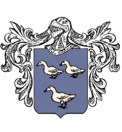 Het wapen bestaat uit drie eenden argent op een blauw veld (In blauw drie eendjes van zilver).[12][15]