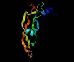 - ↑ Muller, Yves A, Christinger, Hans W, Keyt, Bruce A, de Vos, Abraham M (October 1997). The crystal structure of vascular endothelial growth factor (VEGF) refined to 1.93 Å resolution: multiple copy flexibility and receptor binding. Structure 5 (10): 1325–1338. PMID 9351807. DOI: 10.1016/s0969-2126(97)00284-0.
