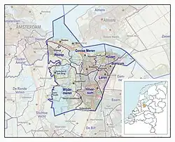 - Gemeenten: Blaricum, Gooise Meren, Hilversum, Huizen, Laren en Wijdemeren
