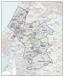 - Rijnland, Schieland en de Krimpenerwaard, Amstel Gooi en Vecht, De Stichtse Rijnlanden.