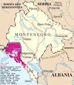 Venetië begon al rond de tiende eeuw de controle over te nemen over de kleine zuidelijke Dalmatische steden waardoor het Dalmatisch snel vervangen werd door het Venetiaans. Het duurde tot de vijftiende eeuw voordat de Republiek Venetië een gebied rond de Baai van Kotor volledig onder controle had. Deze gebieden rondom Kotor bleven van 1420 tot 1797 onder Venetiaans bewind en werd Albania Veneta genoemd, een provincie van de republiek.