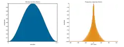 - Resolutiefout: De werkelijke frequentie van de sinus is niet meer nauwkeurig te meten, maar ligt tussen de twee hoogste pieken. Ook kan het voorkomen dat twee sinussen met lichtjes verschillende frequentie niet meer afzonderlijk te zien zijn, maar één gezamenlijke piek in het spectrum creëren.