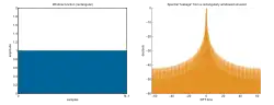 De unieke spectrale lijn op de frequentie van de sinus is dus nu vervangen door deze sinc-functie gecentreerd op de frequentie van de sinus.