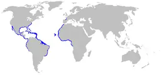 | Verspreiding van de verpleegsterhaai | ||||||||||||||||