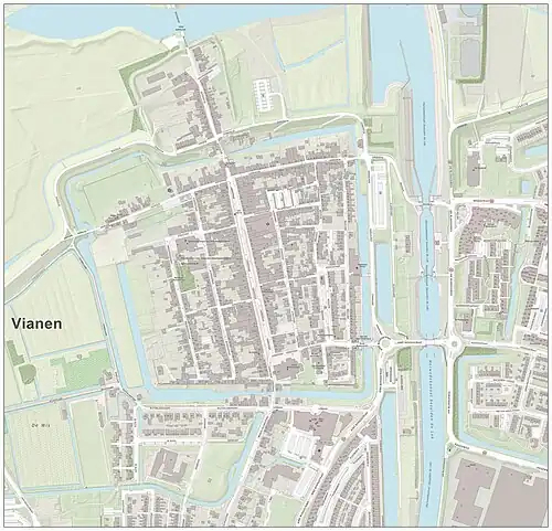Kaart van het oude centrum van Vianen, met vestinggracht.