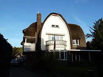 De villa wordt gevormd door een in de lengterichting geplaatste rechthoekige plattegrond. De villa bestaat uit twee bouwlagen. De gevel bestaat uit baksteen, die op de eerste verdieping wit gepleisterd is. De voornaamste gevelopeningen bestaan uit houten rechthoekige glas-in-loodvensters en een houten deur geflankeerd door glas-in-loodvensters. De westzijde bevat gevelopeningen van art deco glas-in-loodvensters. De gevelindeling in totaal is asymmetrisch van opzet. Het middendeel met halfronde erker met een balkon met hardstenen balustrade erop manifesteert zich dominant in de totaalcompositie van het gebouw. Aan de rechterzijde van de erker is een zeer brede luifel aanwezig. Aan de linkerzijde van de erker bevindt zich de ingangspartij met erboven in hout uitgevoerde loggia. Tevens bevindt zich hier een robuuste bakstenen schoorsteen. Het dak van de villa wordt gevormd door een parabolisch boogdak gedekt met riet. Het interieur wordt gevormd door glas-in-loodvensters en houtsnijwerk in art-deco-stijl.