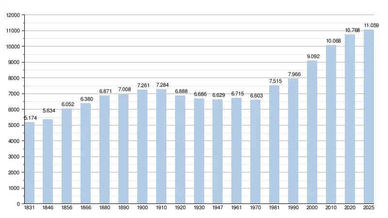 Alle historische gegevens hebben betrekking op de huidige gemeente, inclusief deelgemeenten, zoals ontstaan na de fusie van 1 januari 1977.