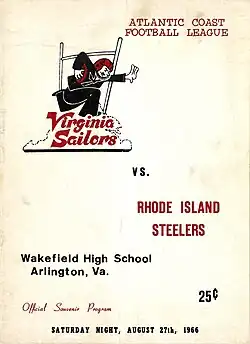 | 1966 | Virginia Sailors | Zwart - Geel | Arlington, VA | Wakefield High School Stadium (7.000) | 3.684 (5) | A.C.F.L. | Southern Division | 1 | 11 | 10 | 1 | 388 | 185 | Kampioen Southern Division |