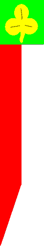 Een groene broeking met in de broektop een geel klaverblad, waarvan de hoogte gelijk is aan 1/3 van de hoogte van de vlag; een vlucht met vijf banen, rood, wit, enz..