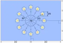 Alle sterren staan met één punt naar boven en twee punten naar onderen; de sterren worden dus niet gedraaid. De sterren horen zich te bevinden op de plekken waar op een analoge klok de uren zijn aangegeven.
