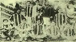 Het eerste elftal van het in 1912 opgerichte Paraguayaanse Cerro Porteño. De spelers droegen een rood-blauw tenue; zo toonden zij aan geen zijde te kiezen in het toentertijd heersende conflict tussen de Coloradopartij en de liberale partij. De latere toevoeging van wit zorgde voor de completering van de nationale vlag.