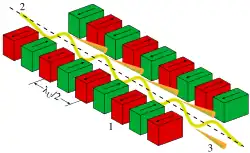 In een vrije-elektonenlaser (FEL) wordt een bundel elektronen periodiek afgebogen door een rij magneten, een undulator. De trillende elektronen genereren elektromagnetische straling, zoals een antenne. De elektronen in een FEL hebben echter een snelheid bijna gelijk aan de lichtsnelheid, waardoor de straling sterk voorwaarts gericht is.