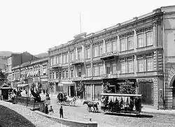 De onderkoning van de Kaukasus, Michail Vorontsov, liet vanaf 1847 onder architectuur van de Italiaan Giovanni Scudieri een nieuwe karavanserai op het plein en een groot theater- en operagebouw aan het plein bouwen, wat de eerste opera in de Kaukasus was. Het theater onder renaissancearchitectuur werd in 1851 geopend, maar werd in 1874 verwoest door brandstichting. Het gebouw werd niet meer gerestaureerd,[2] met uitzondering van de winkels op de begane grond. In 1935 werden de restanten gesloopt.[3]