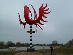 De Vuurvogel is gemaakt van plaatstaal en bestaat uit een vuurrode vogel die met de snavel balanceert op een paal met zwarte en witte banden. De vogel fungeert als windwijzer. Halverwege de paal is een windroos aangebracht. De hoogte van het geheel is 9,5 m, de spanwijdte 10,5 m. Het gewicht is 2250 kg, hetgeen het draaien van de vogel niet belemmert. Cornelis Huisman (1939), de kunstenaar, heeft een werktuigbouwkundige achtergrond.