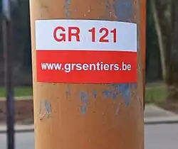 De wandelroute GR121 loopt van Luik tot Boulogne-sur-Mer. De route loopt van Waver via Nijvel en Ronquières tot Péruwelz. In Frankrijk loopt de GR121 verder via Atrecht tot Équihen-Plage aan de Opaalkust.