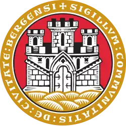 In 1293 gebruikte de stad Bergen een grootzegel met aan de achterzijde nog een afbeelding. Op de belangrijkste zijde stond een stadsmuur met -poort, de muur stond op zeven heuvels. Op de andere zijde stond een Vikingschip. Gedurende de eeuwen zijn de vorm en het formaat van de stadsmuur met -poort aanzienlijk gewijzigd.