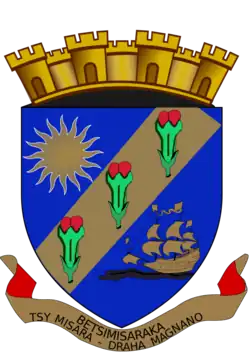 Het motto luidt: Betsimisaraka (verwijzend naar het volk) met daaronder Tsy Misara - Draha Magnano.