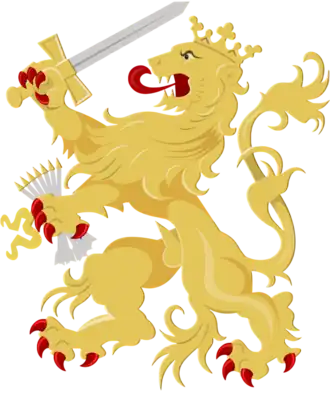 | Schildhouders | Twee leeuwen van goud, getongd en genageld van keel. | |||