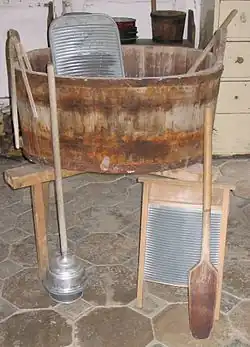 Een wasbord werd vroeger gebruikt voor het met de hand schoonschrobben van de was. Het bord met een meestal houten omlijsting is ongeveer 30 bij 40 cm en bestaat uit een geribbeld schrobvlak van gegalvaniseerd staal waar het wasgoed werd opgelegd, waarna het met een harde wasborstel en groene zeep werd schoongeboend. In later jaren werd in plaats van groene zeep vaak Sunlight-zeep gebruikt. Het schrobvlak was aanvankelijk van hout. Aan het eind van de 19e eeuw en in de eerste helft van de twintigste eeuw kwam gegalvaniseerd staal meer en meer in zwang. Wasborden zijn als instrument in gebruik bij bepaalde muziekgenres.