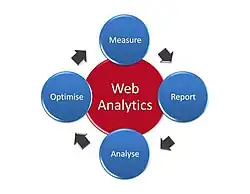 - Dit artikel of een eerdere versie ervan is een (gedeeltelijke) vertaling van het artikel Web analytics op de Engelstalige Wikipedia, dat onder de licentie Creative Commons Naamsvermelding/Gelijk delen valt. Zie de bewerkingsgeschiedenis aldaar.
