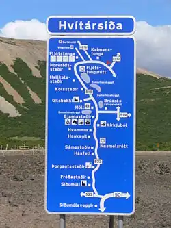 De IJslandse bewegwijzering bestaat uit gele borden met zwarte letters waarbij de wegnummers op een wit schildje met zwarte letters worden geplaatst. Indirecte wegnummers verschijnen in een wegschild met onderbroken rand. Serviceborden komen ook veel voor. Deze zijn blauw met witte of gele letters. Hierop worden bestemmingen, zoals boerderijen of namen van rivieren en bergen, weergegeven. Toeristische bestemmingen verschijnen op een wit bord met rode rand en rode letters.