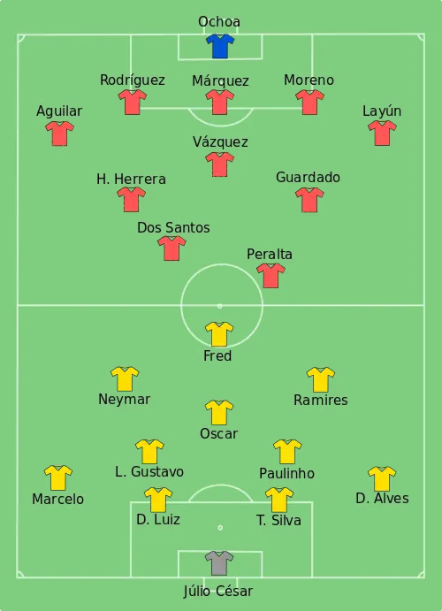 opstellingen | Guillermo Ochoa Paul Aguilar Francisco Rodríguez Héctor Moreno Miguel Layún José Juan Vázquez Andrés Guardado |