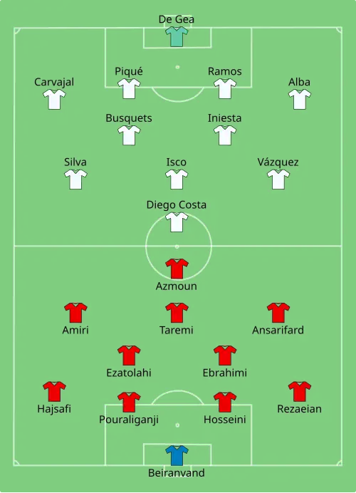 - ↑ Tournament statistics: Iran – Spain op de officiële website van wereldvoetbalbond FIFA. Geraadpleegd op 23 juni 2018.