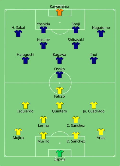 - ↑ Tournament statistics: Colombia – Japan op de officiële website van wereldvoetbalbond FIFA. Geraadpleegd op 21 juni 2018.