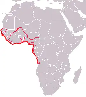 Verspreidingsgebied van de West-Afrikaanse lamantijn.