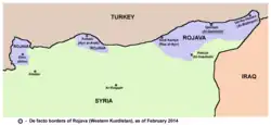 Het autonome bestuur van Noord- en Oost-Syrië in 2014, door het Koerdische Project 'Syrisch Koerdistan' genoemd[25]