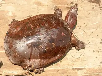 | Roodrugweekschildpad (Cycloderma aubryi), exemplaar uit Congo-Kinshasa. | ||||||||||||||