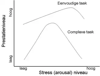 De term stressniveau is hier synoniem met arousalniveau (of niveau van fysiologische opwinding). Prestatie kan betrekking hebben op allerlei taken zoals een cognitieve taak (nadenken, een probleem oplossen), een sportprestatie of taken als autorijden, besturen van een vliegtuig en dergelijke.
