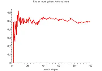 De relatieve frequentie gaat bij het gooien van een munt naar 0,5.