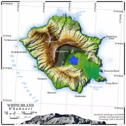 White Island (Maori: Whakaari), de bekendste vulkaan van Nieuw-Zeeland, ligt 48 kilometer van de kust aan de vlakke noordkant van het Noordereiland.